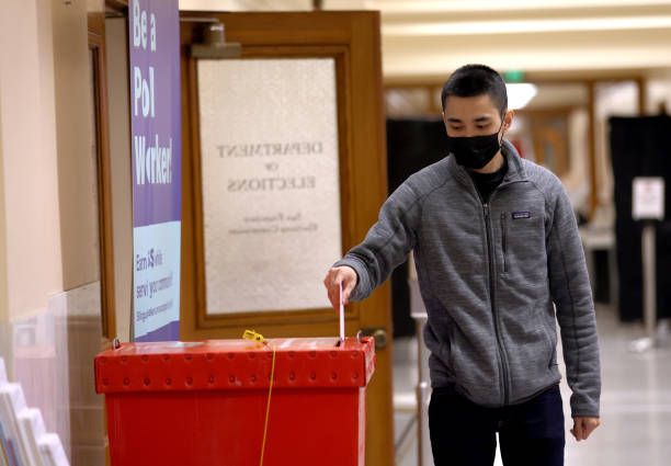 Một cử tri đang bỏ phiếu tại Tòa Thị Chánh San Francisco, California ngày 7 tháng 6, 2022. (Justin Sullivan/ Getty Images)