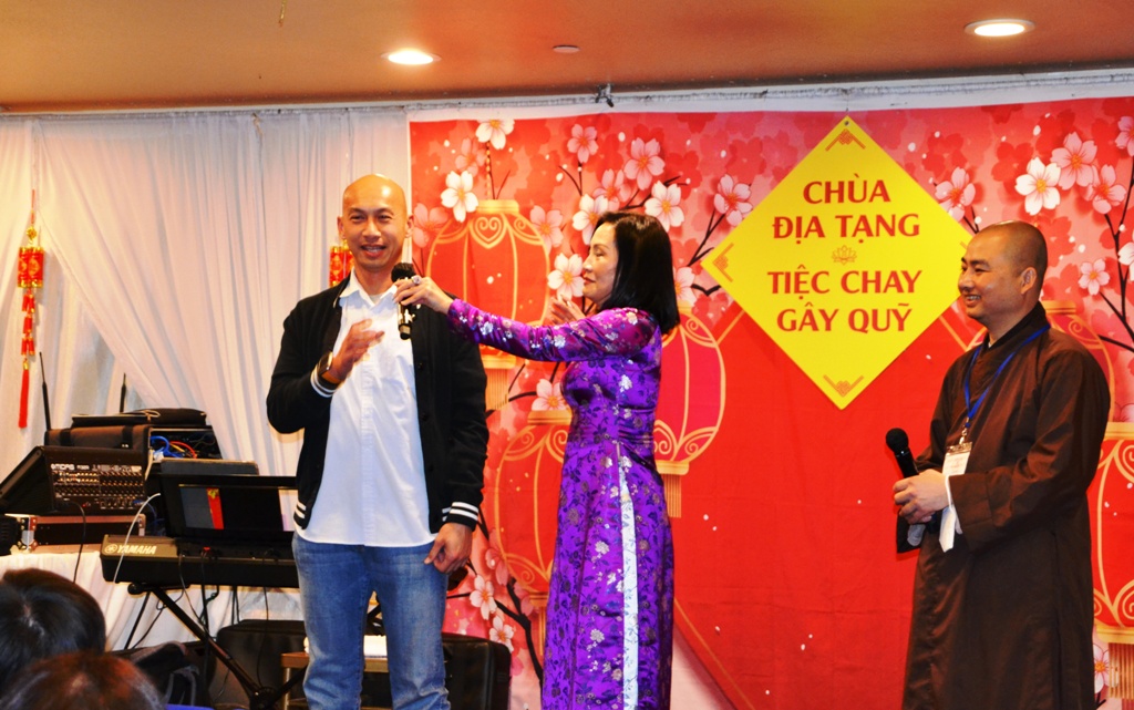 WESTMINSTER - Vào chiều Chủ Nhật, 12 tháng 2, 2023 nhà hàng Seafood World trên đường Brookhurst, thành phố Westminster, một nhà hàng khá rộng nhưng không đủ chỗ cho hơn 600 Phật tử đến tham dự Tiệc Chay Gây Quỹ giúp Chùa Địa Tạng. Có lẽ người vui nhất hôm đó chính là Đại Đức Thích Nguyên Phong, trú sứ chùa Địa Tạng vì lượng người đến tham dự ngoài ước mong của vị sư trẻ này.
