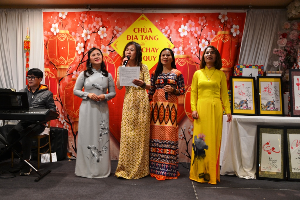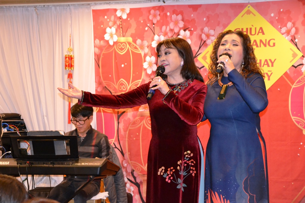 Trước giờ khai mạc, nhiều ca sĩ và Phật tử thay phiên nhau lên ca hát khiến không khí trong nhà hàng luôn rộn ràng, vui vẻ; nhất là với những bản nhạc viết về Xuân, về quê hương.