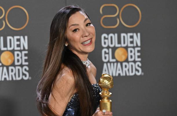 Nữ tài tử Mã Lai Á Michelle Yeoh chụp hình với giải Nữ Tài Tử Xuất Sắc Nhất cho phim "Everything Everywhere All at Once" tại phòng truyền thông của chương trình phát giải Quả Cầu Vàng Lần Thứ 80 (Golden Globe Awards) được tổ chức trong khách sạn The Beverly Hilton ở Beverly Hills, California đêm thứ Ba, ngày 10 tháng Giêng, 2023. (Frederic J. Brown/ AFP via Getty Images)